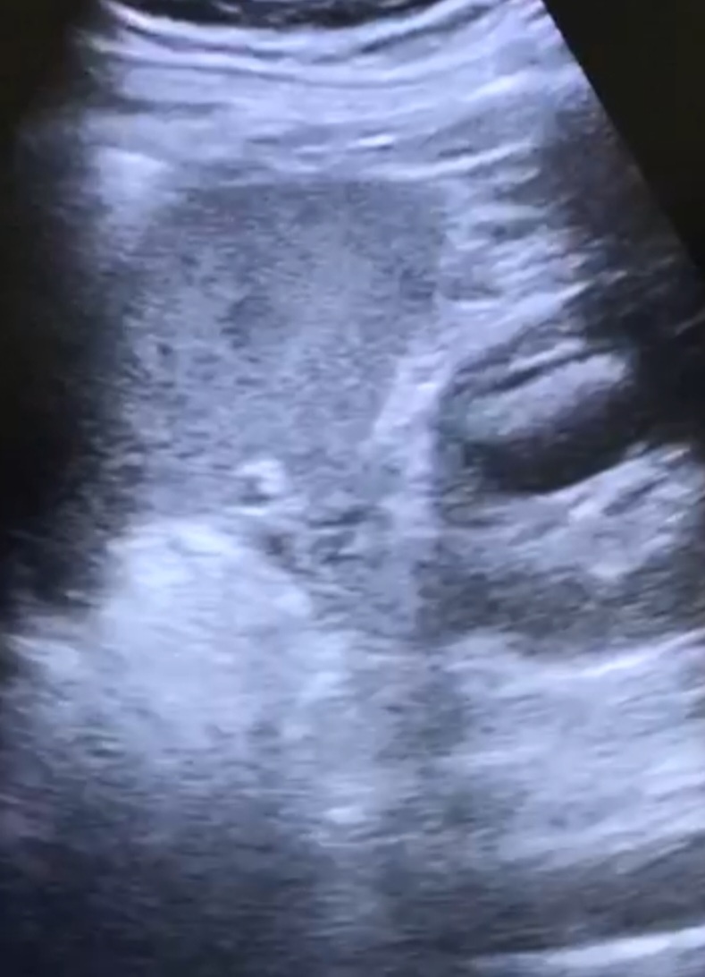 Se deriva a SUH: ID de hernia inguinal no complicada, se cita en consulta externa con cirugía; se realiza ecografía de partes blandas y se descarta la presencia de hernias. Por persistencia de síntomas acude en varias ocasiones a AP; como hallazgos casual test de aliento positivo, se pauta TTX erradicador con posterior negativización. La clínica no cedía, pese a ttx analgésico intercalado, y se acentuó en FID por lo que vuelve a consultar por su MAP y se deriva a SUH con ID de apendicitis/ hernia inguinal/orquitis; con ID de epididimitis se le pauta ATB por 7 días + urocultivo negativo. En AP se solicita cita para urología. Se le vuelve a remitir en otra ocasión desde AP a SUH: ID de dolor abdominal inespecífico y remite a su MAP. ECOABD en su MAP: imagen quística en polo superior renal izquierdo, solicita ECOABD reglada: imagen en la cara lateral del polo superior del riñón izquierdo de características quísticas de 3x2 cm, con imágenes ecogénicas en su interior con sombra acústica y con artefacto en cola de cometa (sugiere naturaleza cálcica).