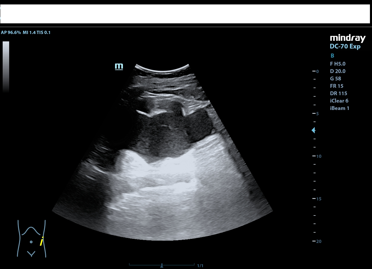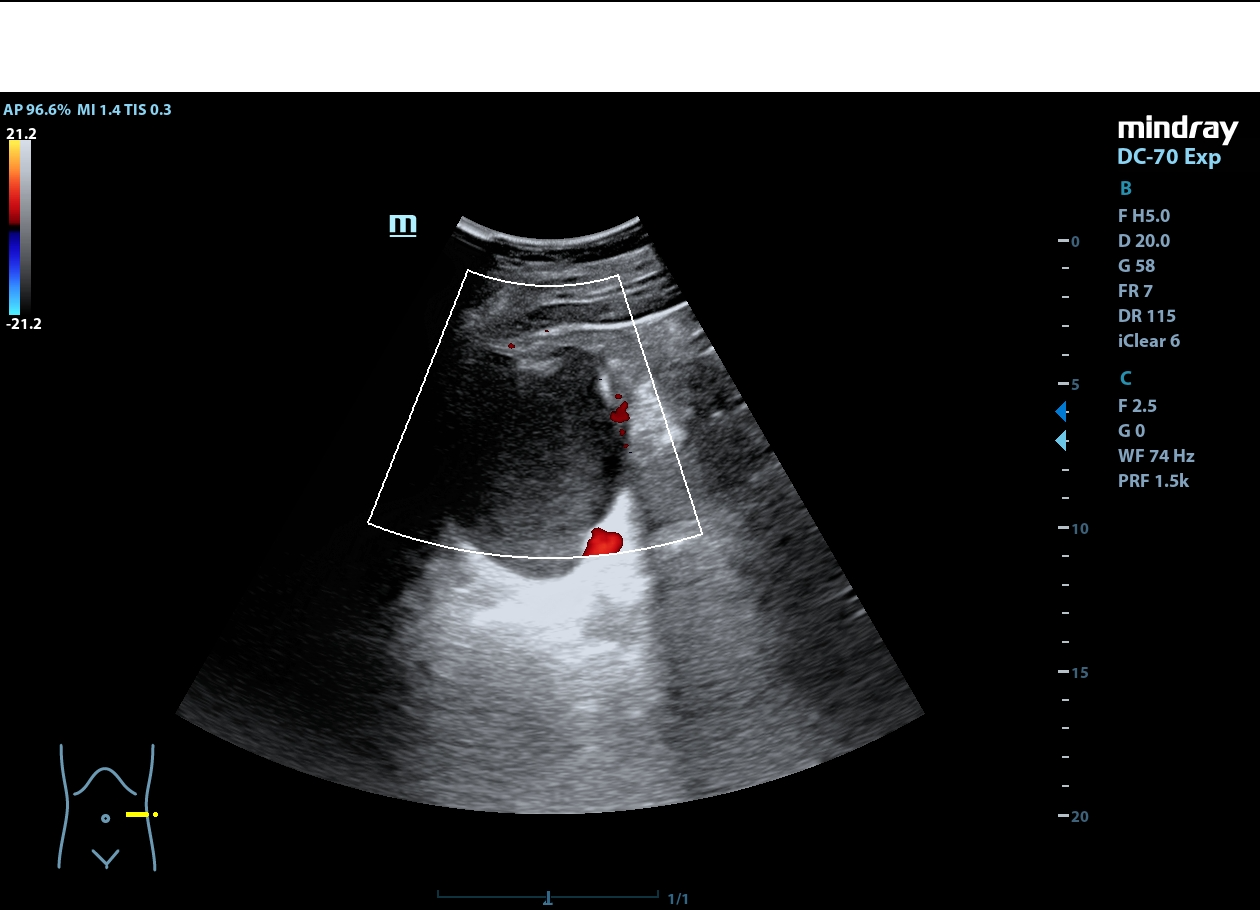 Sin antecedentes personales relavantes. Se solicita analítica y ecografía clínica en el centro de salud. La paciente acude a las 48 horas, refiriendo mejoría de la sintomatología. A la exploración, dolor en flanco y fosa renal izquierda, con puñopercusión ipsilateral positiva. En la analítica, elevación de los reactantes de fase aguda (ferritina 700, PCR 17, VSG 140). Ante estos hallazgos se decide realizar ecografía clínica.