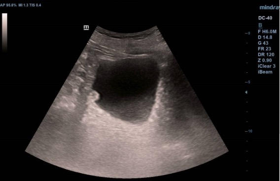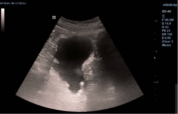 Antecedentes personales: Varón de 80 años, DM, HTA, DL, exfumador importante, IQ aneurisma de aorta. Acude a consulta para resultado de analítica de control anual, destacando hematuria de 200 hematíes/campo. El paciente refiere hematuria intermitente por la que no ha consultado previamente, sin otra clínica asociada. Se realiza ecografía ese mismo día.