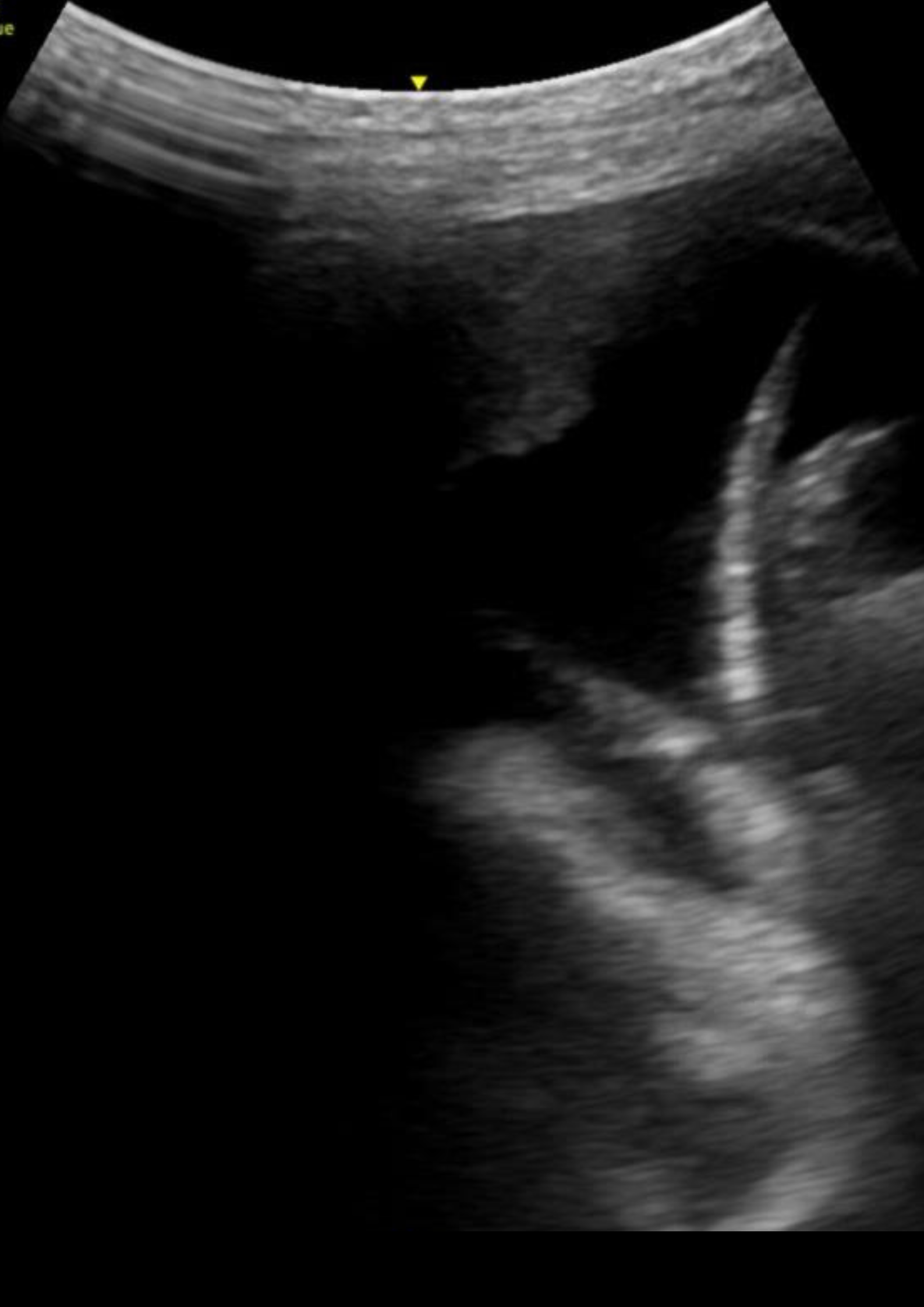 Mujer de 58 años que acude por segunda vez por persistencia de clínica de nasofaringitis aguda desde hace una semana con inicio de fiebre de hasta 38 ºC en los últimos dos días. Además, asocia leve fatiga con los esfuerzos. Como antecedentes es diabética tipo II en tratamiento con metformina y dislipémica en tratamiento farmacológico. A la exploración física presentaba una satO2 91%, con auscultación rítmica con roncus diseminados y cerpitantes bibasales de predominio derecho, así como silencio auscultatorio en base derecha. Decidimos realización de ecografía pulmonar.