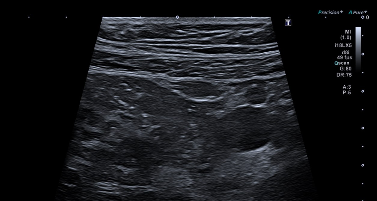 Ecografía partes blandas: En localización infraumbilical, sin aparente dependencia de estructuras profundas ni modificación en maniobra de Valsalva, lesión hipoecoica bilobulada (4,3 x 8,5 x 7,1 mm) con aparente conexión hacia región vesical, sobre la que no se demuestra vascularización, inespecífica, que podría corresponder a seno uracal, sin poder descartar sobreinfección asociada.